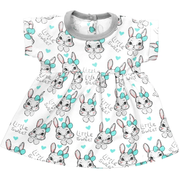 Was haben Bucks Bunny und Winnie Poohs Freund Rabbit gemeinsam? Richtig – beide sind beliebte Zeichentrick-Hasen, die nicht nur pfiffig, sondern auch super süß sind. Ganz genau wie die bezaubernden Häschen, die dieses hübsche Kleid im Allover-Print zieren. Mit einer Schleife im Haar schauen sie dich neugierig an und freuen sich darauf, dich und deinen Sprössling kennenzulernen! Außerdem wird das Häschen-Design mit kleinen Herzchen und den Schriftzügen „Little Sweet“ ergänzt. So ist es ein echtes Must-Have, das im Alltag alle Blicke auf sich zieht und an Ostern ein besonderes Highlight bildet. Es überzeugt sowohl bei sonnig warmem Wetter als auch bei kühleren Temperaturen im bewährten Zwiebellok. Das ermöglicht der atmungsaktive sowie hautfreundliche Stoff, der angenehm weich auf der Haut liegt. Zudem erleichtern praktische Druckknöpfe das An- und Ausziehen des in der EU produzierten Hinguckers. Genial, oder? (07501-001)