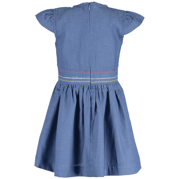Modisches Baumwollkleid mit Rundhalsausschnitt. Auf dem Rücken des Kleides ist ein
