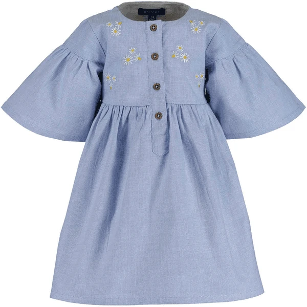 Modisches Baumwollkleid mit Rundhalsausschnitt. Mit niedlicher Stickerei auf