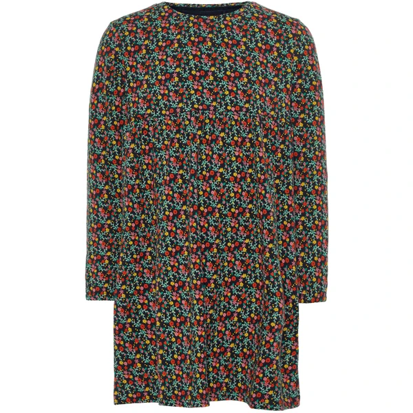 Schönes langärmeliges Kleid mit Blumen-Alloverprint und Rundhalsausschnitt. Aus weichem Baumwollstoff mit Stretchanteil.