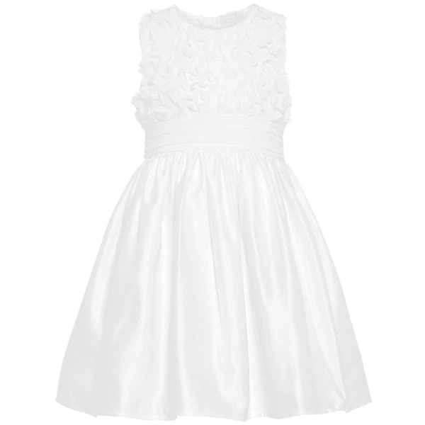 Schönes weißes Kleid für kleine Prinzessinen. Ärmellos und mit Blumenverzierung