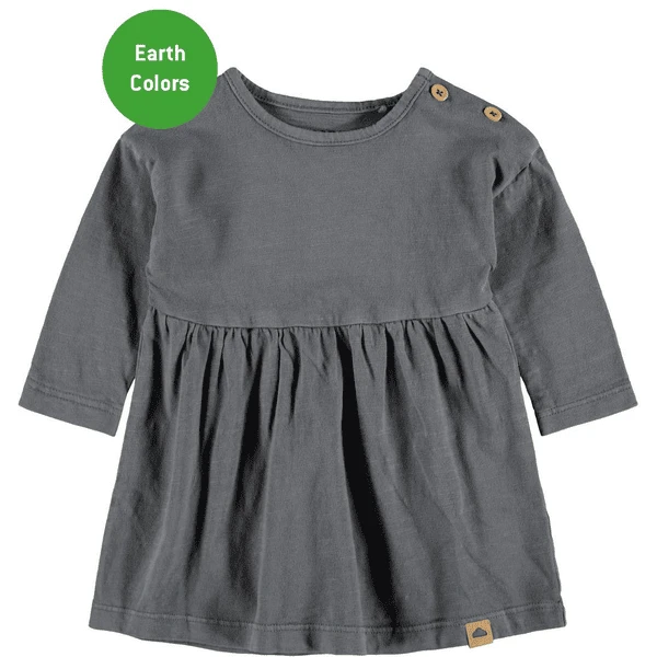 Süßes Kleidchen mit natürlicher Färbung und langen Ärmeln. Hergestellt aus