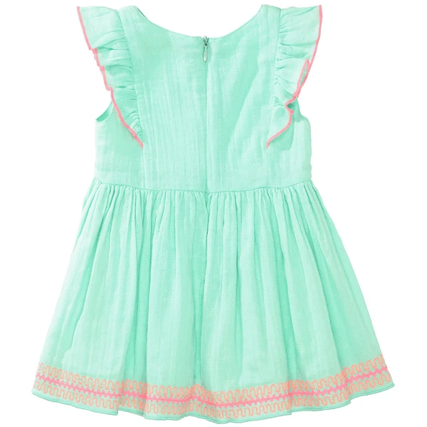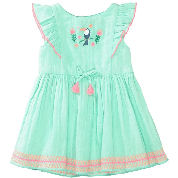 Kleidchen begeistert mit bunten Stickereien und süßen Volants.