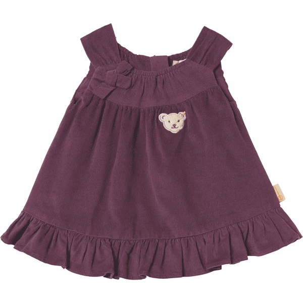 Elegant und gleichzeitig bequem, damit erfüllt das Kleid die Fashion-Wünsche der kleinsten Stilikonen. Weiches Baumwollfutter wärmt und sorgt für gemütlichen Sitz. Ein Reißverschluss am Rückenteil hilft beim Anziehen. Am Träger sorgt eine Schleife für niedliche Romantik. In einem warmen Beerenton und mit verspieltem Volant, wird das Kleid zu jeder Jahreszeit im Alltag und auf Festen zum Hingucker. Für alle Fälle begleitet ein flauschiges Steiff Teddybärmotiv deine Kleine durch Alltag und zu Festen. Oh là là!